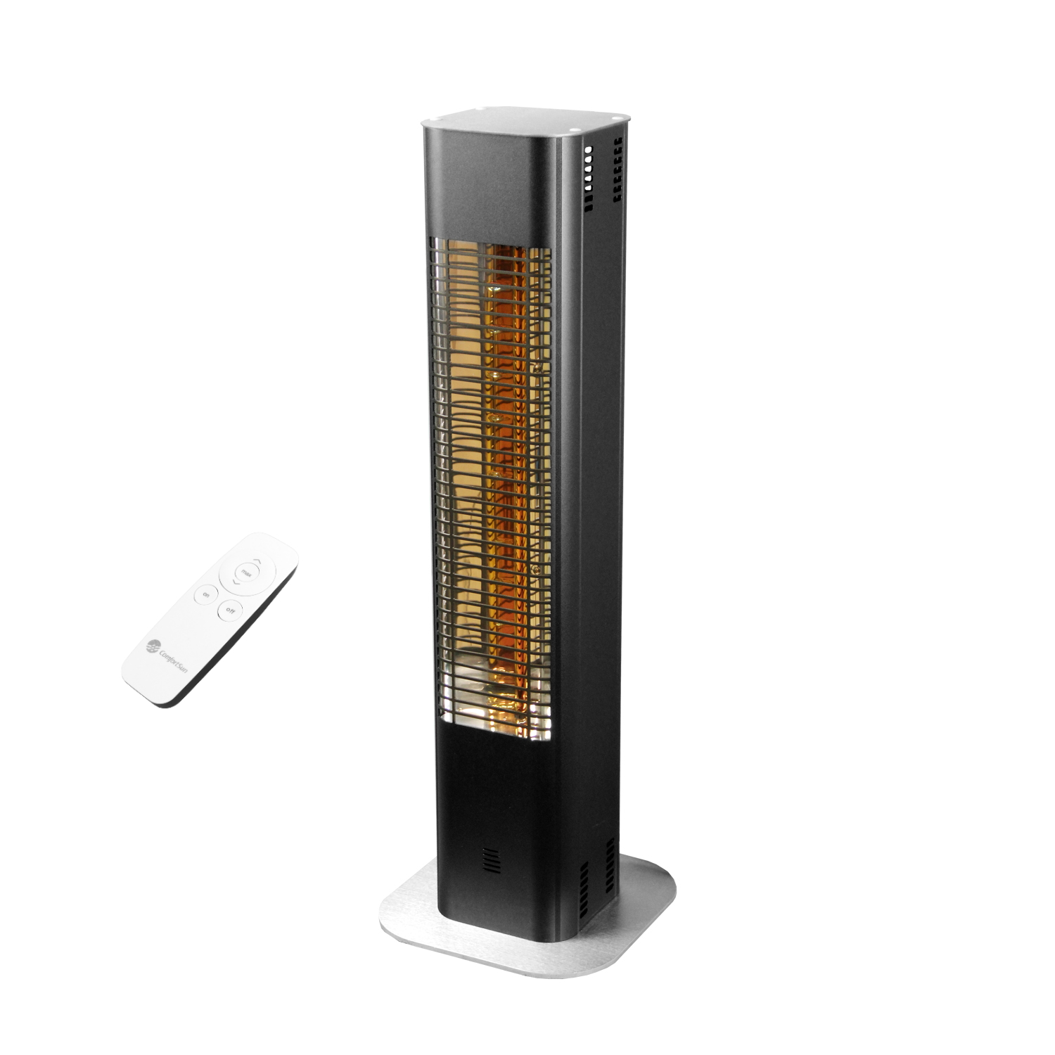 Der ComfortSun Infrarot Tower verkörpert einen innovativen Premium Standheizstrahler mit modernster Infrarottechnik im zeitgemäß edlen Design. Unser mit 2000 W ausgestattetes Infrarot Standgerät wurde von Grund auf für den flexiblen Einsatz im Außenbereich konzipiert und verfügt über Strahlwasserschutz dank IP65 Klassifizierung sowie einer massiven Bodenplatte aus gebürstetem Edelstahl, um Wind und Wetter zu trotzen. Das robuste Aluminiumgehäuse in wertiger Materialstärke sorgt weiterhin für einen optimalen Stand. Die Bohrung in der Bodenplatte auf der Rückseite des Infrarotstrahlers erlaubt zudem eine fixe Montage. Weitere Sicherheit bietet der integrierte Kippschutz, der ab einem Neigungswinkel von 40 Grad den Wärmestrahler sofort abschaltet. Selbstverständlich besitzt der Strahler eine geprüfte Qualität "Made in Germany". Die hochmoderne, langlebige und qualitativ hochwertige Low Glare 09 Infrarotlampe bietet einen um 90 % reduzierten Lichtausstoß bei gleichzeitig deutlich spürbarer Wärme mit hohem Anteil an kurzwelliger Infrarotstrahlung. Der mittels Raytracing speziell entwickelte Reflektor emittiert die Infrarotstrahlung optimal und blendungsfrei. Großer Abstrahlwinkel mit gebündelter Heizleistung perfekt vereint. Genießen Sie das leicht orangefarbene sanfte Licht auf Ihrer Terrasse und fühlen Sie sich wohl und entspannt.